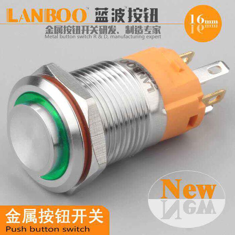 16mm金屬按鈕開關/帶燈/自復式/自鎖式/防水/高頭環形發光/LANBOO