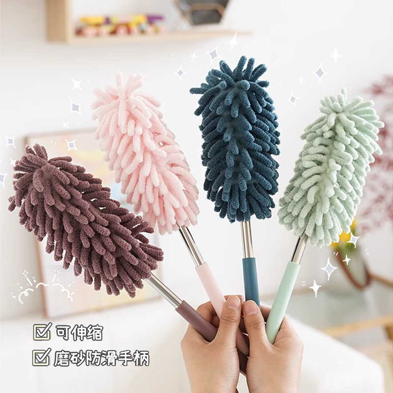 迷你雞毛撣子家用掃灰神器可彎曲伸縮加長雪尼爾長柄除塵撣可拆洗