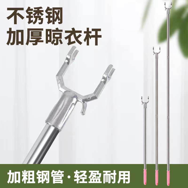 加長3米三節不銹鋼伸縮撐衣桿晾衣桿丫叉服裝店取衣桿挑衣桿關窗