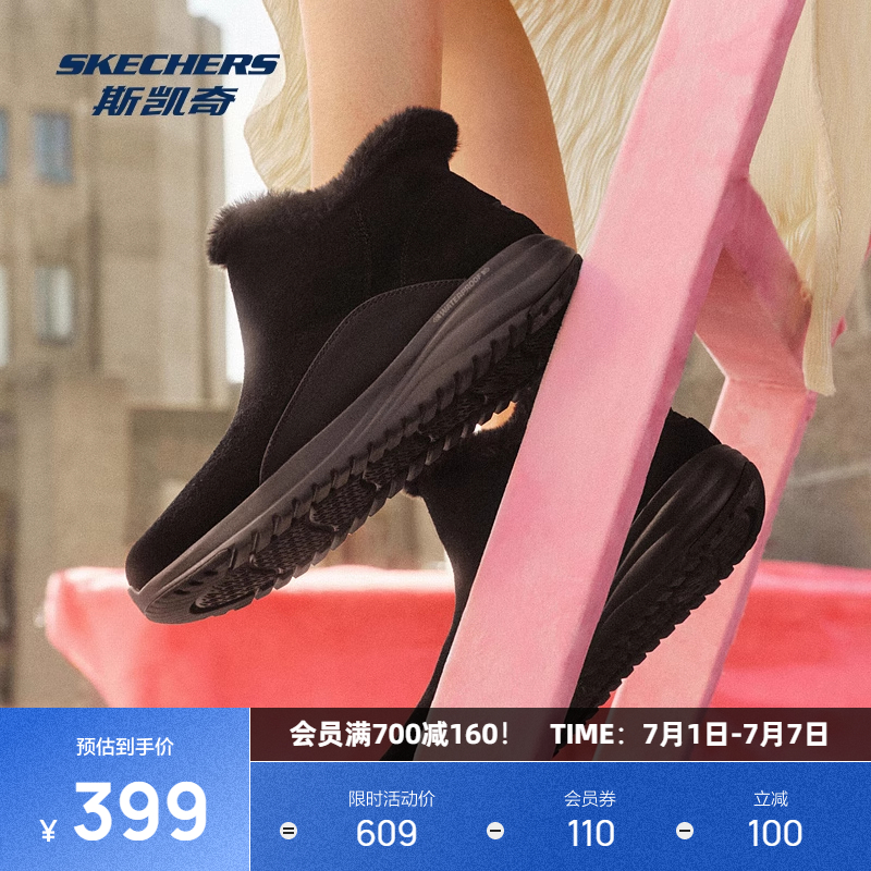 斯凱奇秋季雪地靴復古鞋女士抓地保暖鎖溫耐磨休閑運動鞋百搭時尚