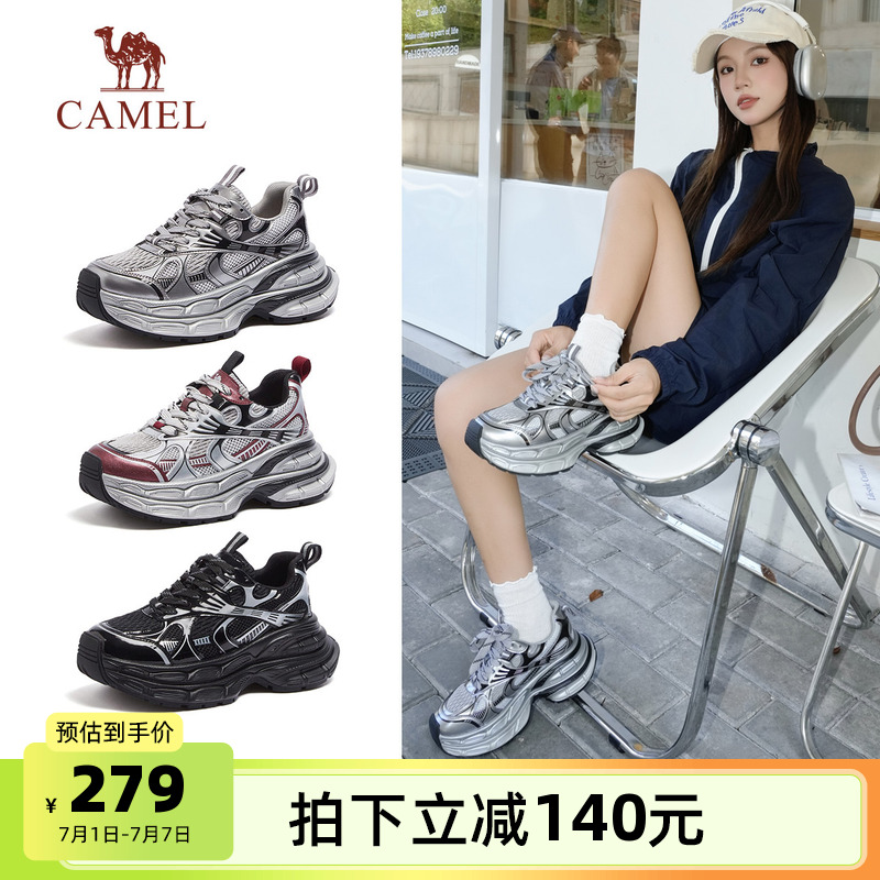 駱駝銀月老爹鞋戶外休閑鞋2025春夏新款女鞋厚底增高防滑耐磨鞋子