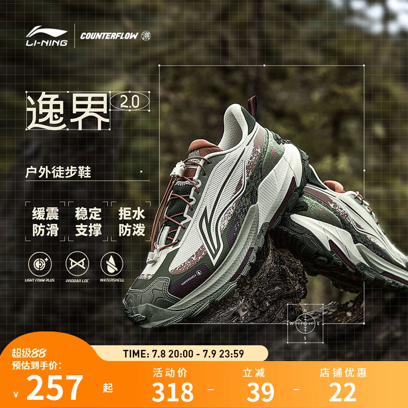 李寧戶外休閑鞋 逸界 2.0 男女同款戶外防滑減震防潑水耐磨徒步鞋