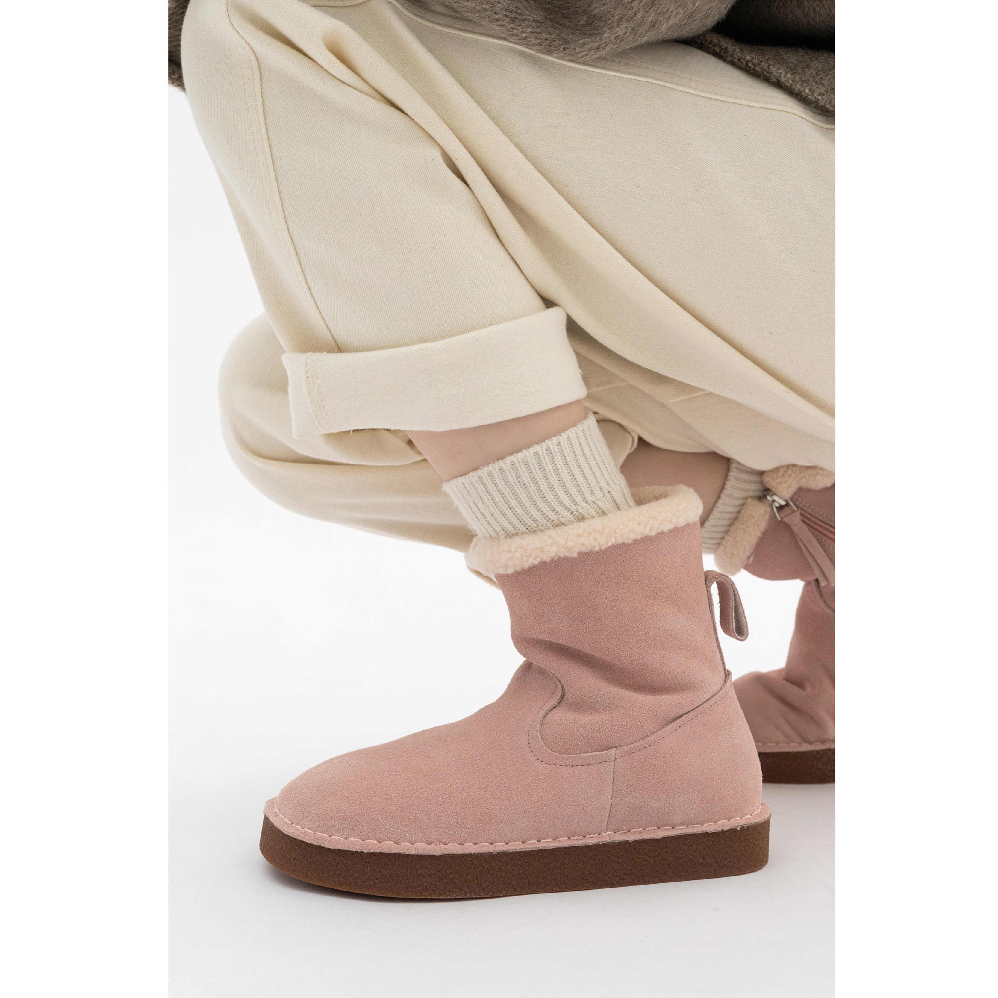 柚子芙 小暖爐雪地靴女短筒拉鏈冬季新圓頭真皮加絨鞋