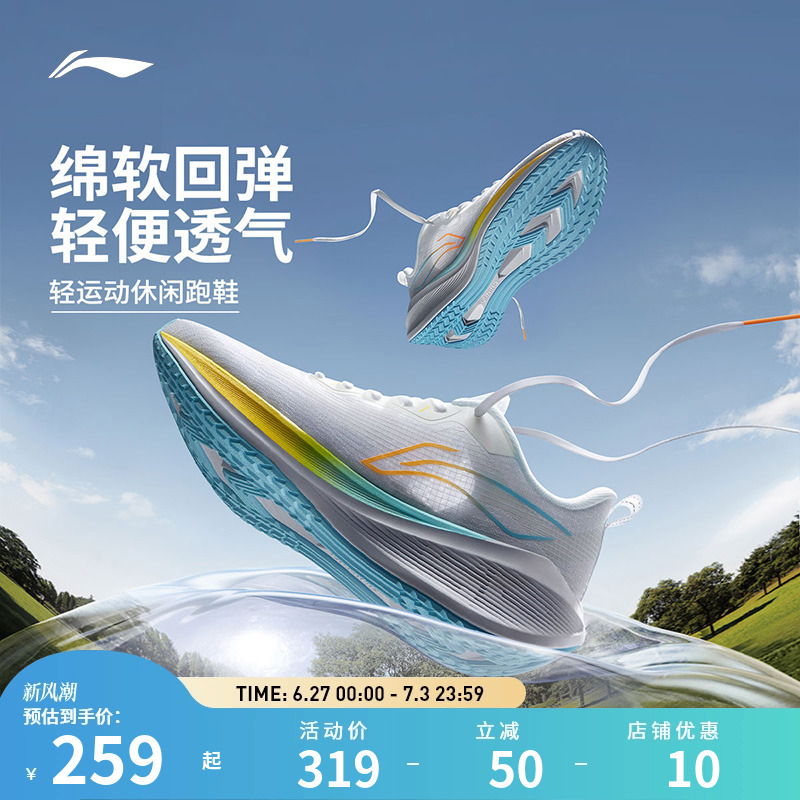李寧跑步鞋 吾躍 男子減震透氣回彈輕便軟底舒適戶外運動慢跑鞋