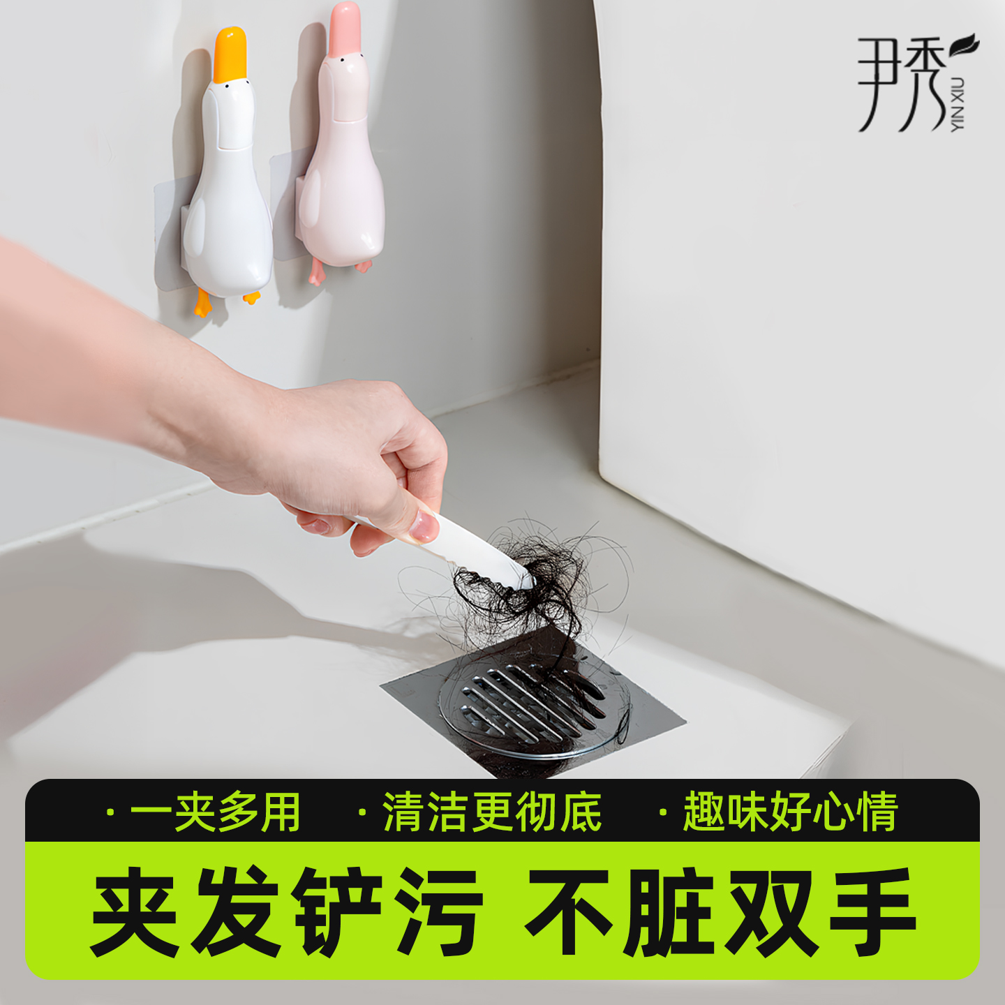 可愛鴨毛發夾家用清潔夾浴室衛生間可鏟污漬清潔神器多功能臟物夾