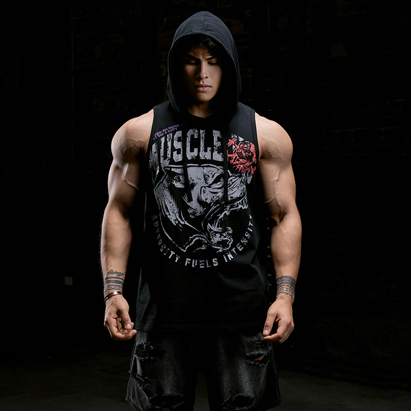 肌肉狗 怒目咆哮 潮牌運動背心男夏季涼感寬松連帽訓練服健身上衣