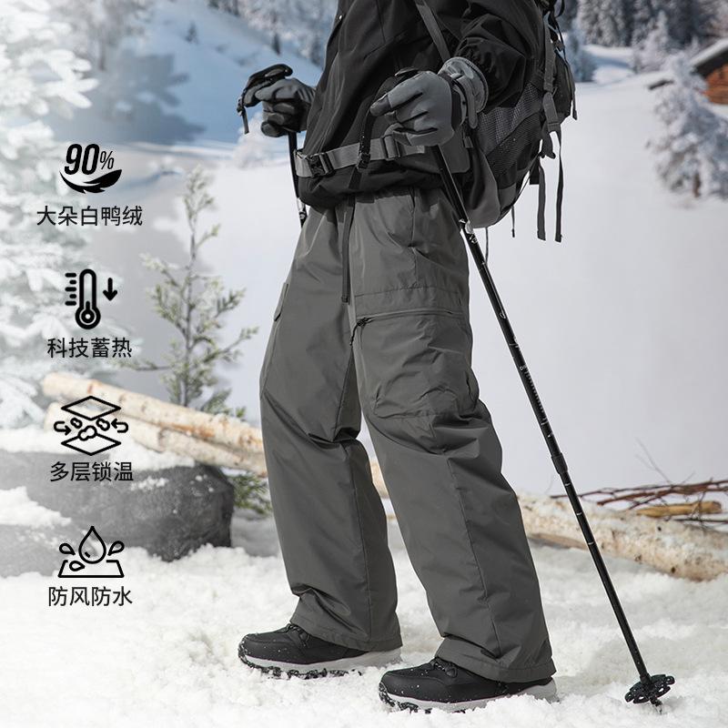 天石戶外羽絨褲男士外穿加厚保暖鵝鴨絨中老年東北羽絨棉褲女V039