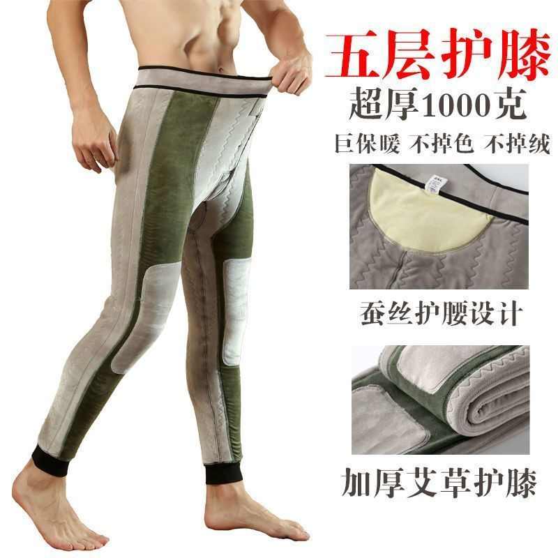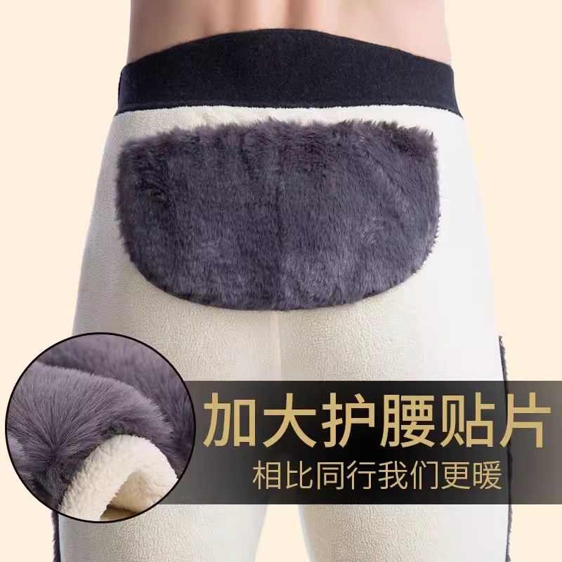 光面高腰一體加絨中青年保暖褲加厚修身棉毛褲男士棉褲打底褲秋冬