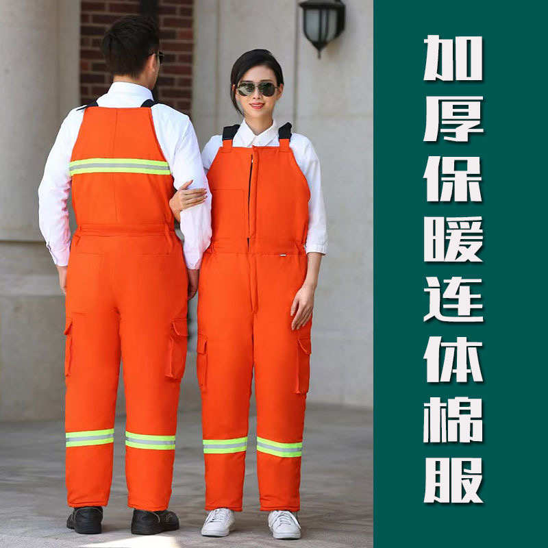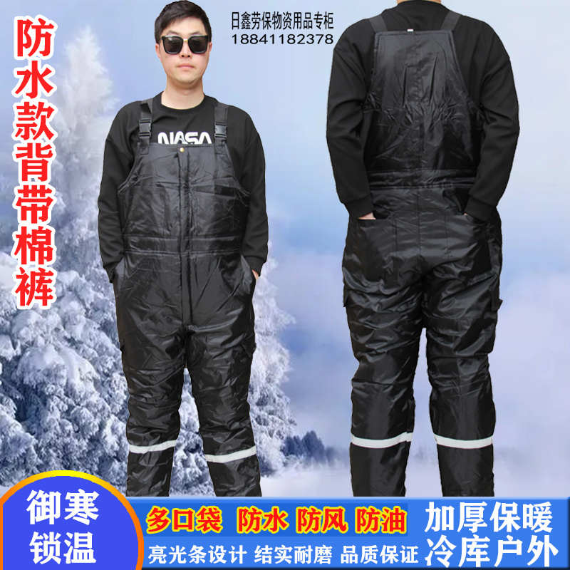 冬季背帶棉褲男冷庫保暖連體工作服工人棉褲汽修勞保演出耐磨工裝