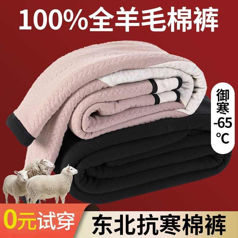 爆品羊毛保暖褲男女士特加厚秋冬棉褲修身中老年羊毛褲東北高腰