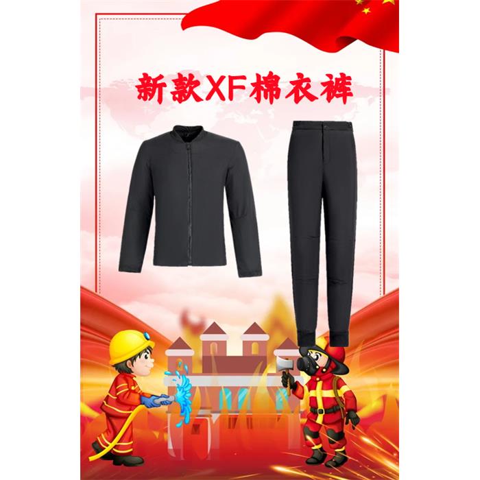 新款消防棉衣棉褲套裝黑色男士搖粒絨棉服冬季加厚保暖防寒棉衣褲