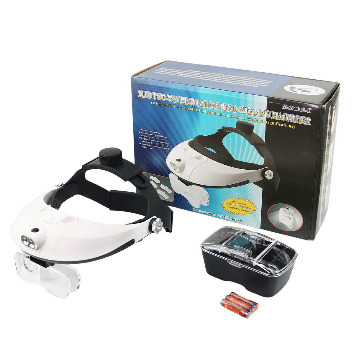 廠家批發雙LED燈老人閱讀頭戴式放大鏡可替換維修老花鏡81001-H