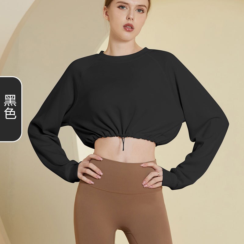 新款長袖b運動瑜伽m衛衣女短款露臍罩衫顯瘦抽繩健身服跑步外套上