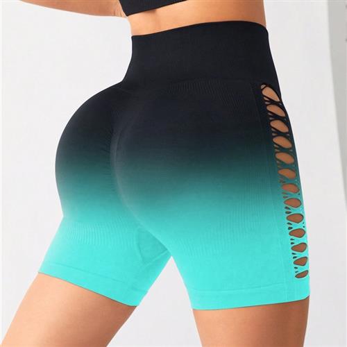 33色側b邊鏤空漸變扎染無縫瑜伽短褲健身褲蜜桃臀運動三分褲short