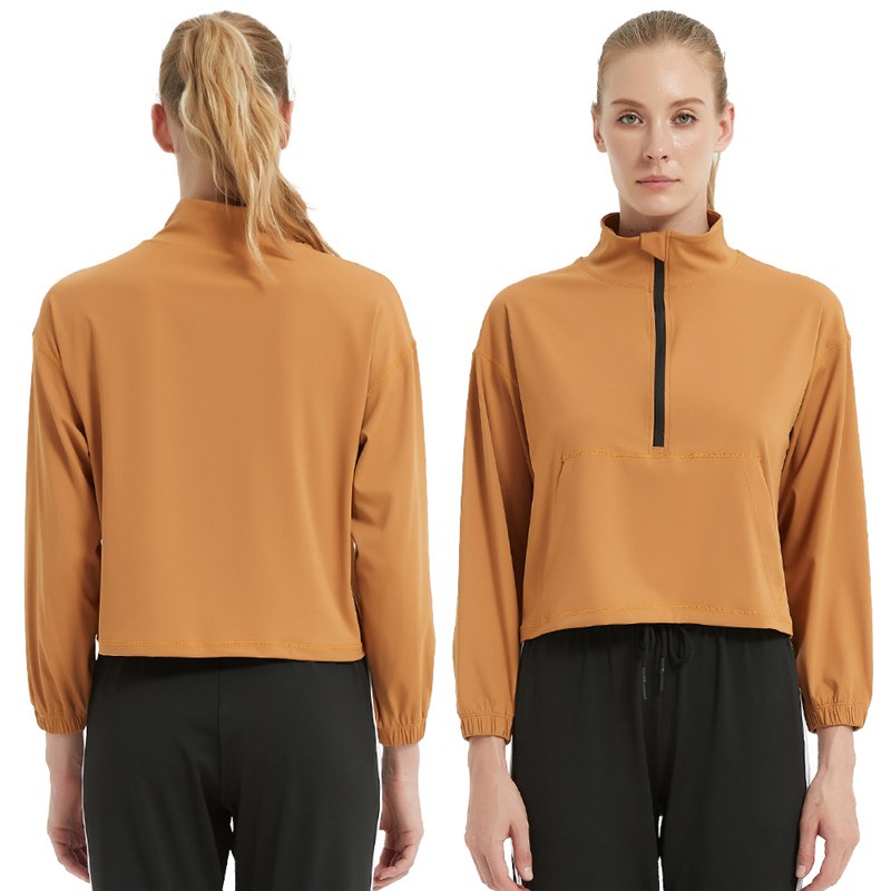 速發巨森2024寬松罩衣瑜伽服女士冬季G半開衫立領T長袖T恤運動速