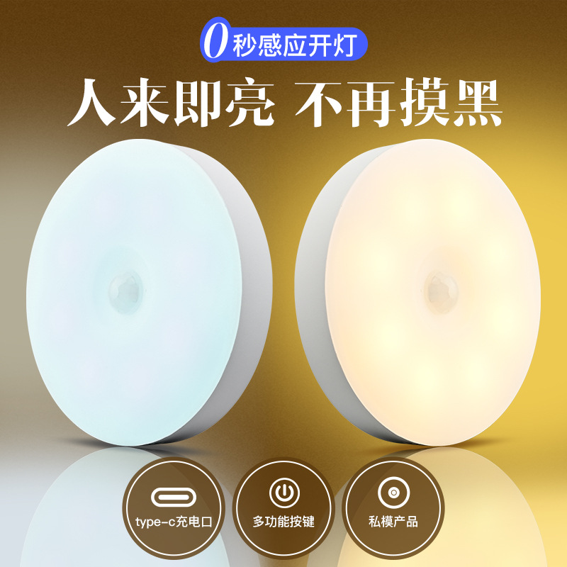 跨境新款Type-C充電口圓形人體感應燈智能磁吸遙控usb小夜燈批發