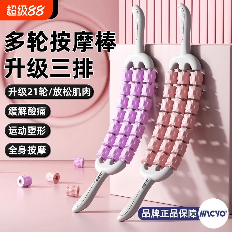 SHUM四排可彎曲狼牙棒按摩滾軸兒童長高訓練肌肉放松滾輪腿部小腿
