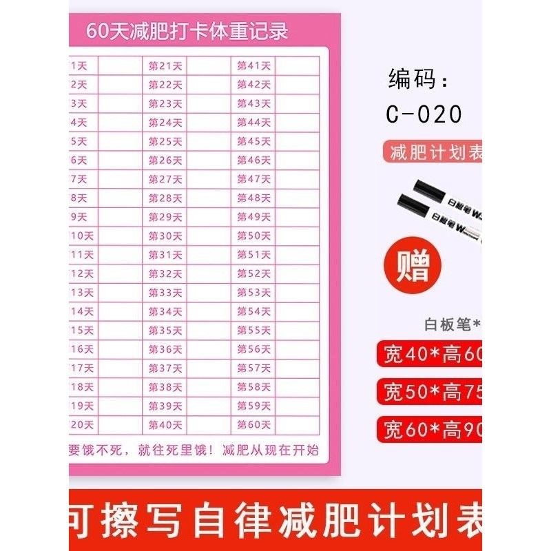 體重打卡記錄表體重自律神器健身運動勵志計劃激勵提醒墻貼提示牌