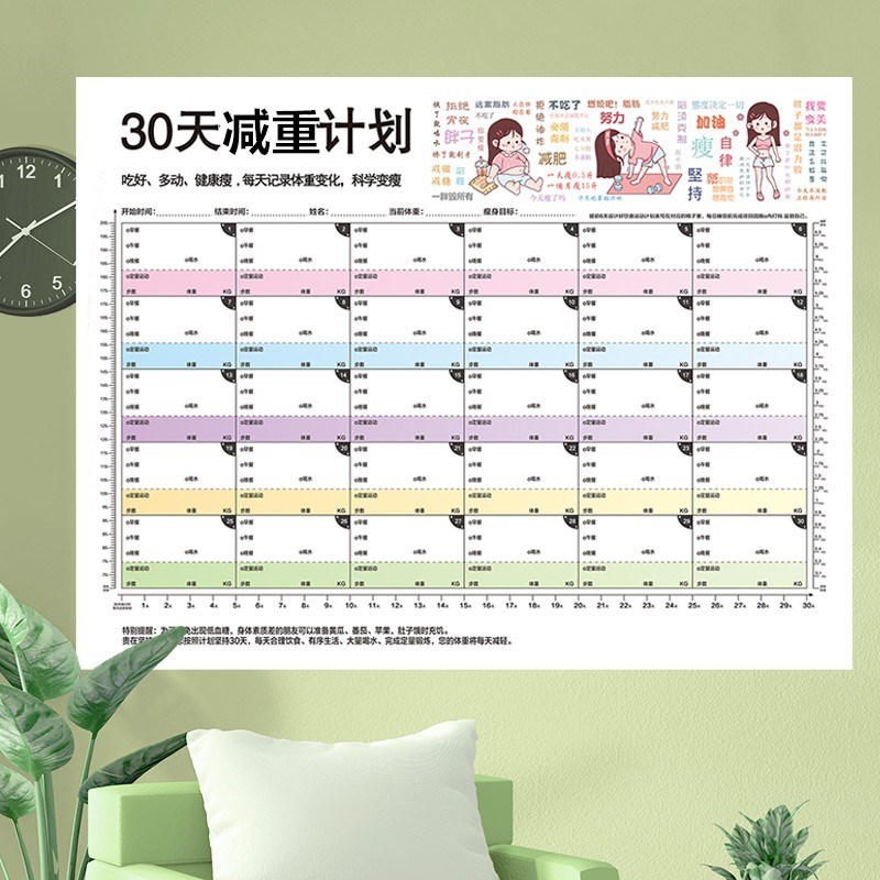減重肥計劃表飲食健身體重管理記錄日記本自律打卡體重記錄表墻貼