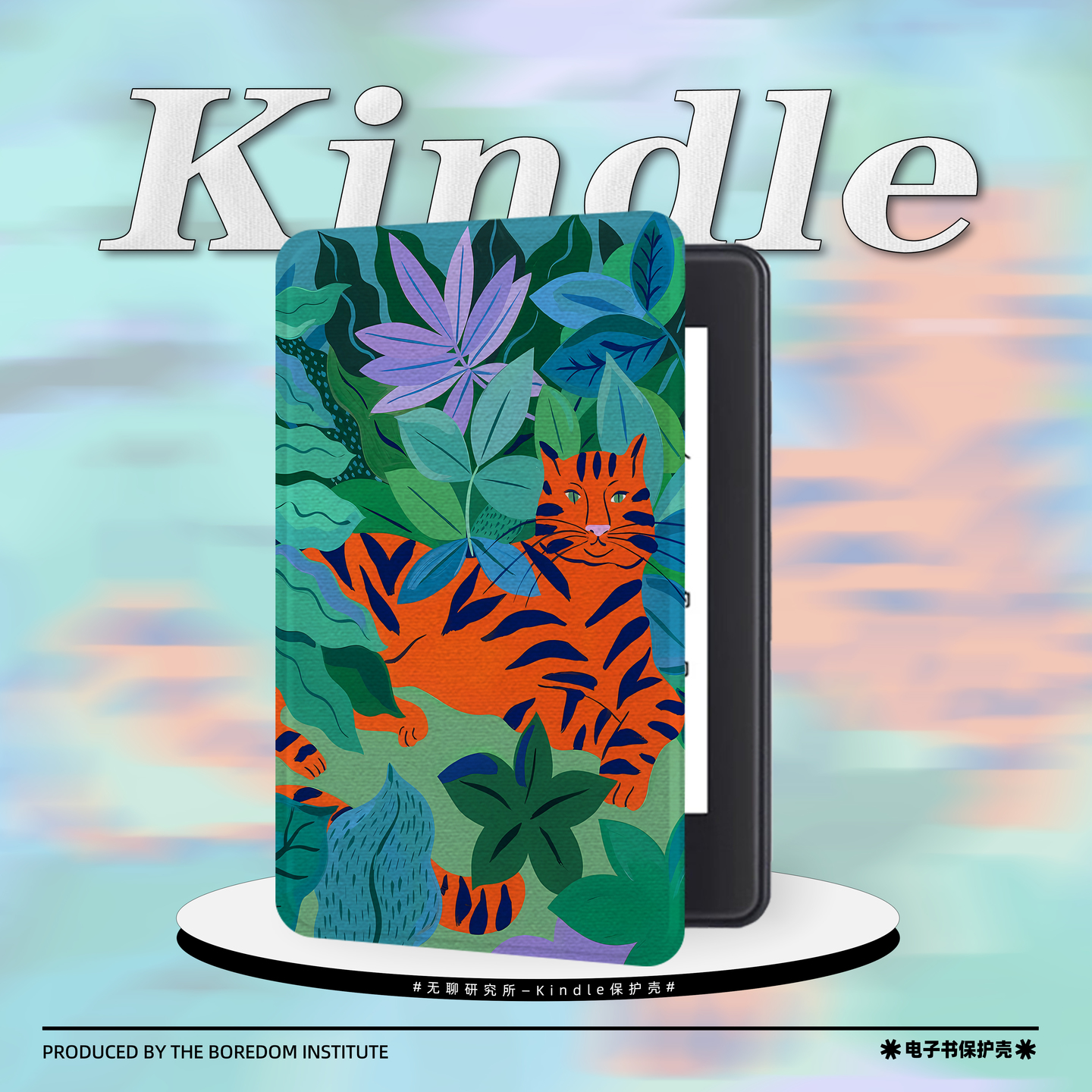 可愛綠葉老虎適用kindle7/8代電子書保護套5代oasis2/3防摔休眠