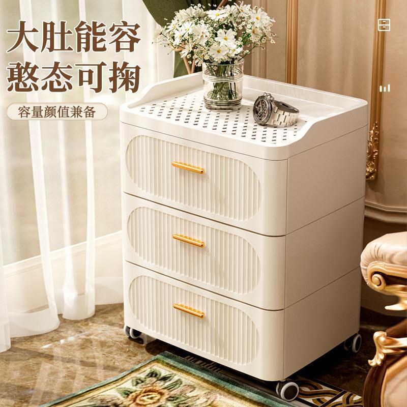 抽屜式床頭柜收納柜家用客廳多層輕奢儲物柜子臥室奶油風五斗柜子