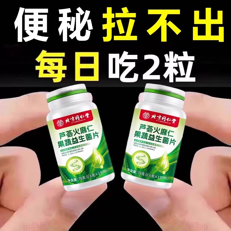 1瓶同仁堂蘆薈火麻仁益生菌100片清腸通便排便宿便便秘潤腸通便