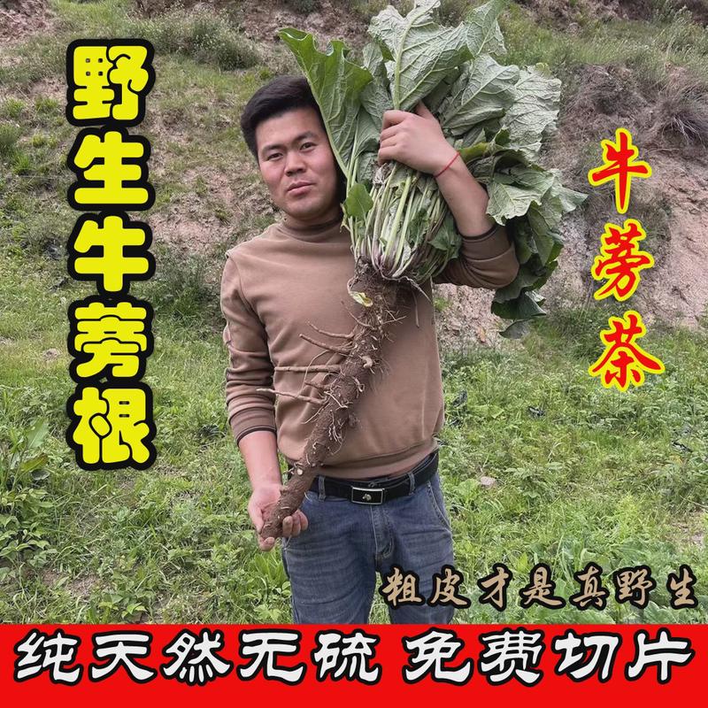 整顆野生新鮮牛蒡根切片500g牛蒡茶甘肅深山采挖特級無硫熏中藥材