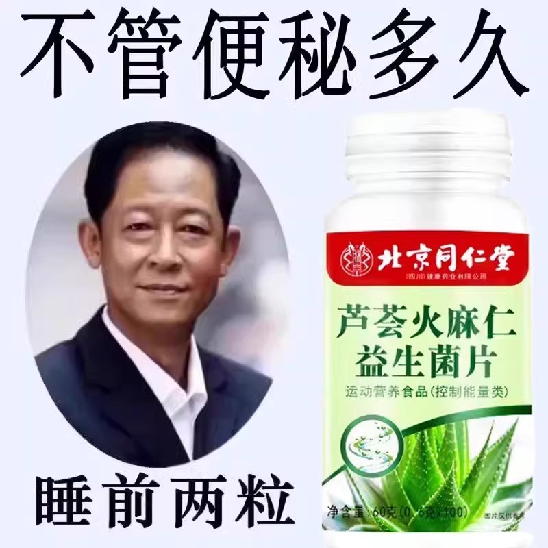 北京同仁堂蘆薈火麻仁益生菌100片清腸通便排便宿便潤腸通便