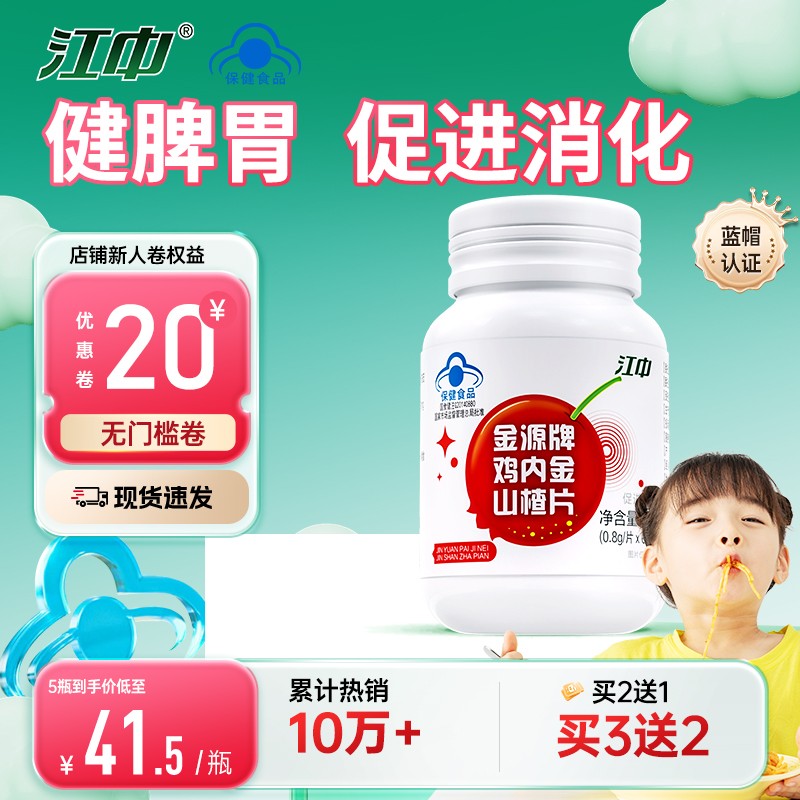 江中山楂雞內金片積食助健消化開胃咀嚼片調理脾胃兒童官方旗艦店