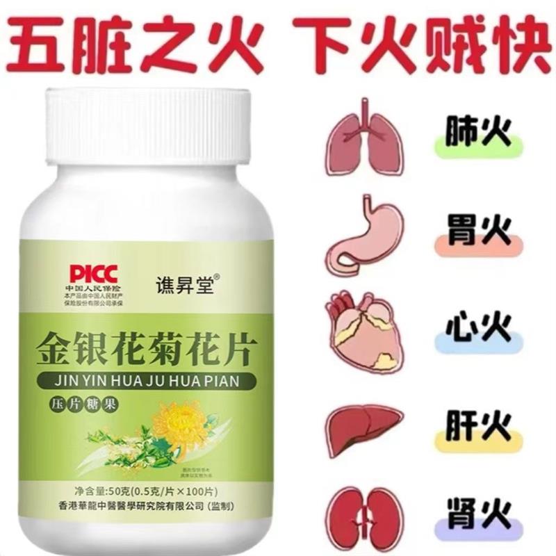 金銀花菊花濃縮片 清熱降火比泡茶效果好含片一瓶100片熬夜去火