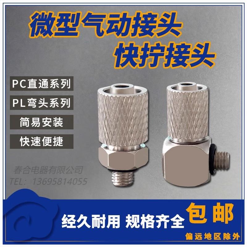 微型快速接頭PC4-M5/彎頭PL6-M5快擰 快插 氣管 外螺紋直通接頭