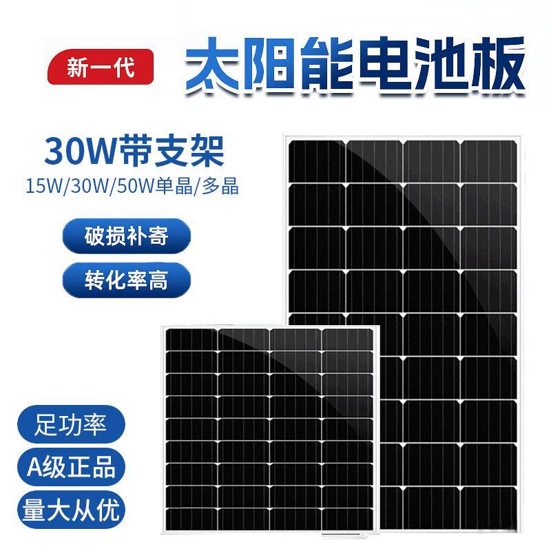 單多晶戶外太陽能發電板15W/30W/50W帶支架光伏電池板5521連接線