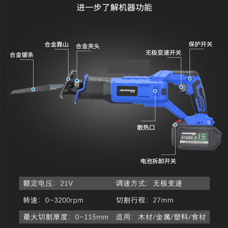 充電式往復鋸電機電動馬刀鋸550型馬達手持切割鋰電鋸電機21V8齒