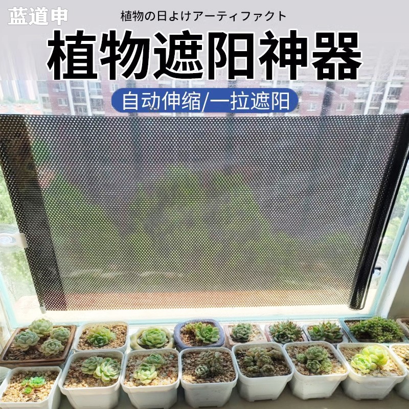 植物遮陽神器夏季陽臺花卉綠植多肉防曬網罩吸盤式窗戶伸縮遮陽簾