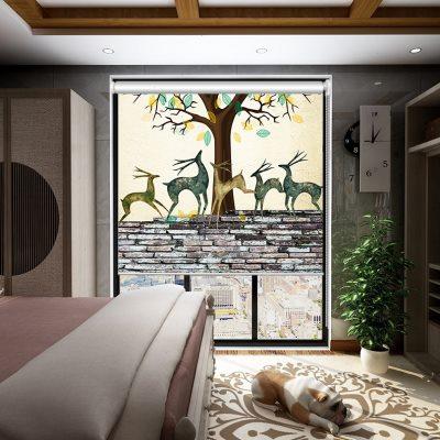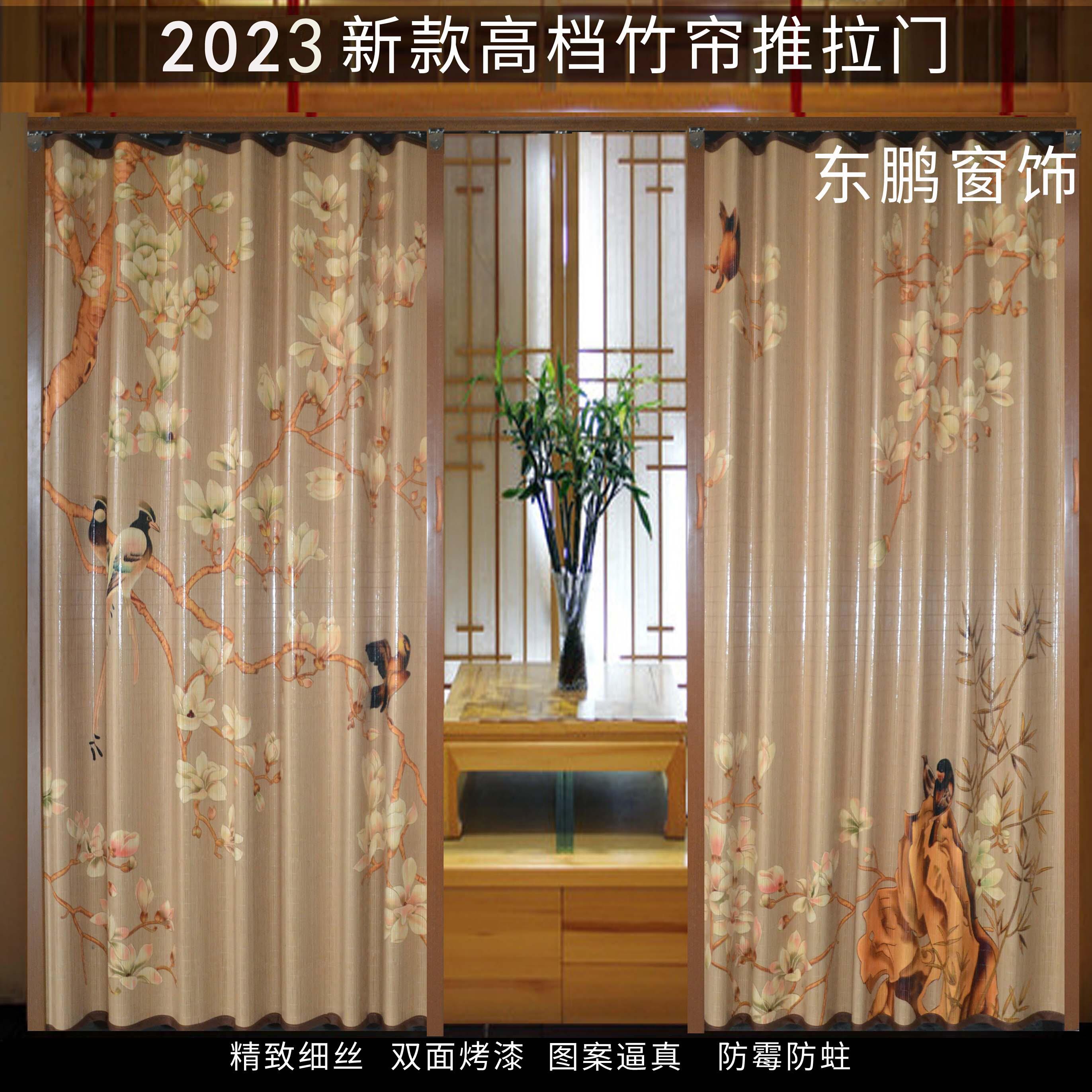 新中式禪意印花卷簾窗簾竹簾遮光升降百葉電動遮陽免打孔隔斷茶室