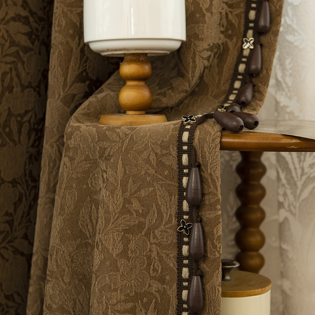 窗簾高端簾頭幔頭穗子中古風花邊立邊黑色咖色木頭吊珠輔料M-952