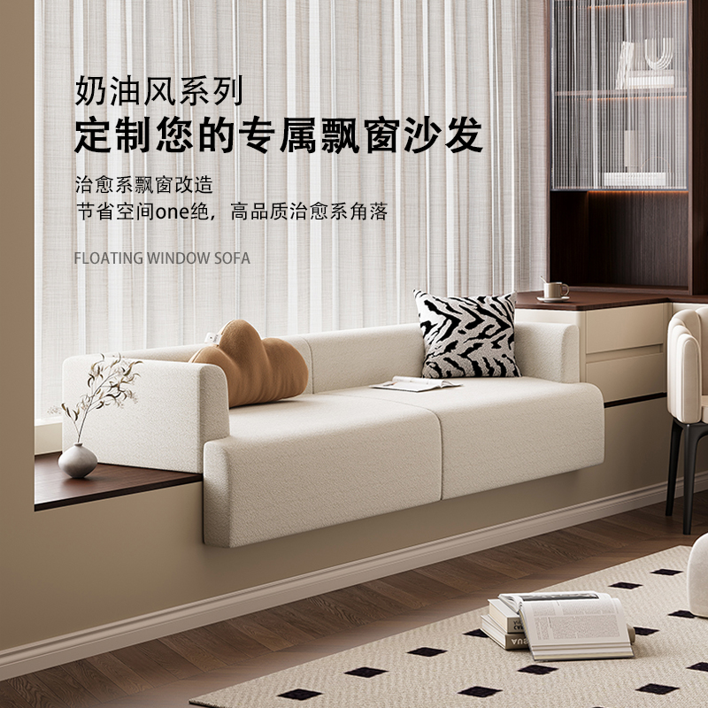 2025新款法式奶油風臥室定制飄窗改造一體沙發泰迪絨沙發