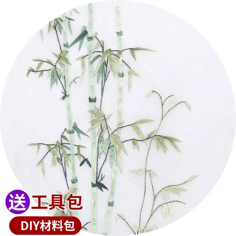 蘇繡刺繡手工diy套件自繡材料包初學古風自繡入門針跡竹子