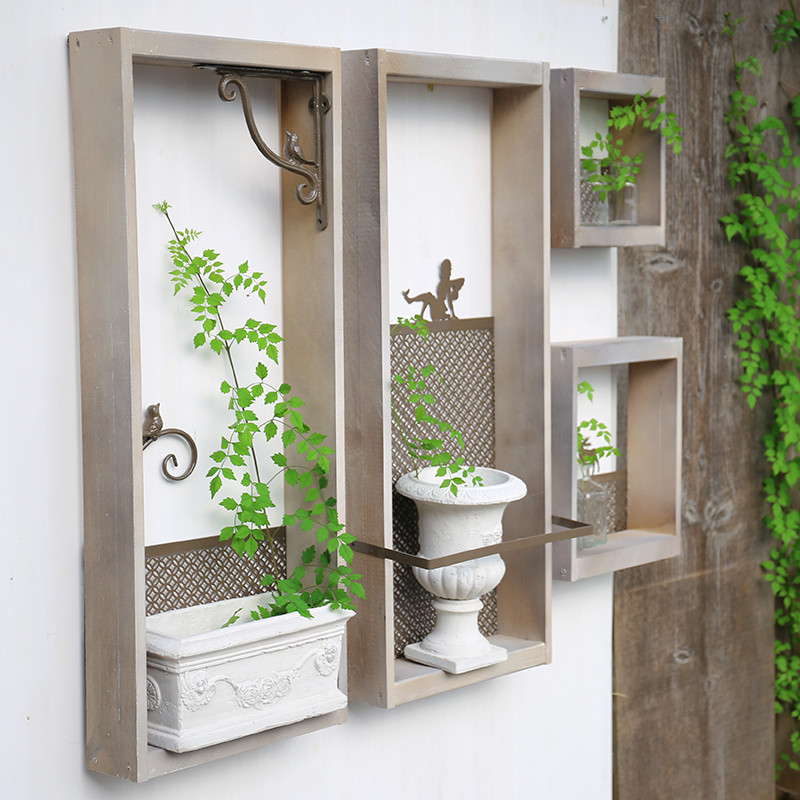 防腐木花盆架裝飾隔板架壁掛式花架墻面戶外掛架陽臺植物爬藤架子