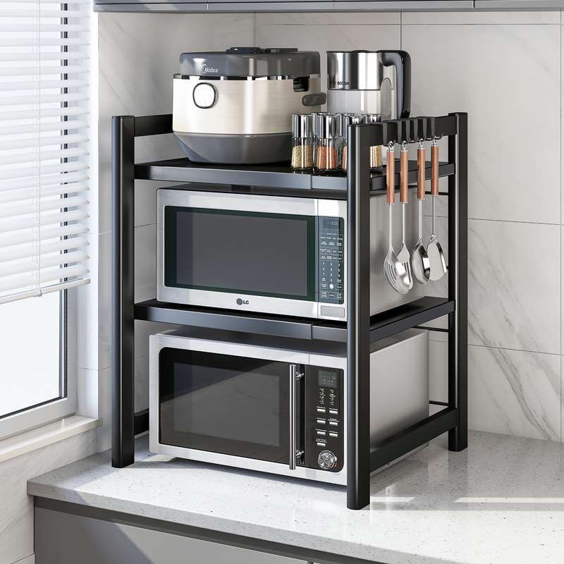 廚房微波爐置物架烤箱架子用臺面桌面雙層可伸縮電飯鍋收納支架
