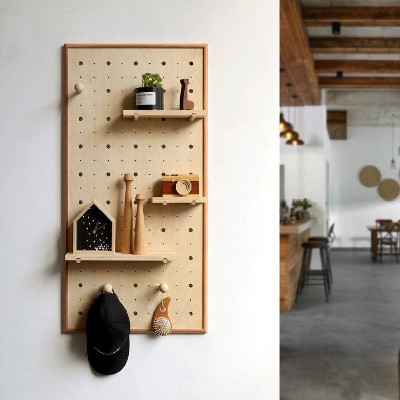 木質洞洞板 北歐室內墻上裝飾玄關壁掛置物架定制 隔板收納展示架