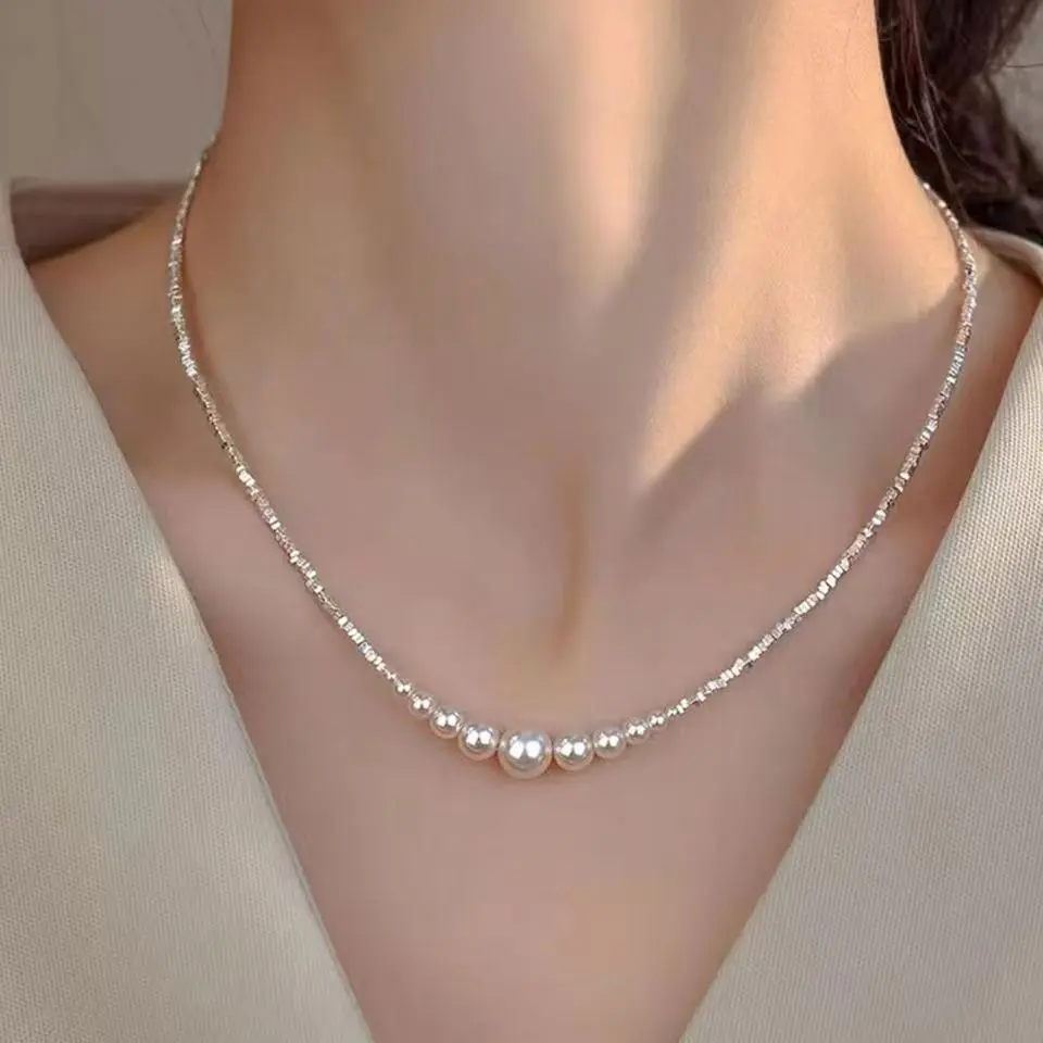 碎銀幾兩項鏈女輕奢小眾漸變珍珠鎖骨鏈時尚氣質高級感冷淡風頸鏈