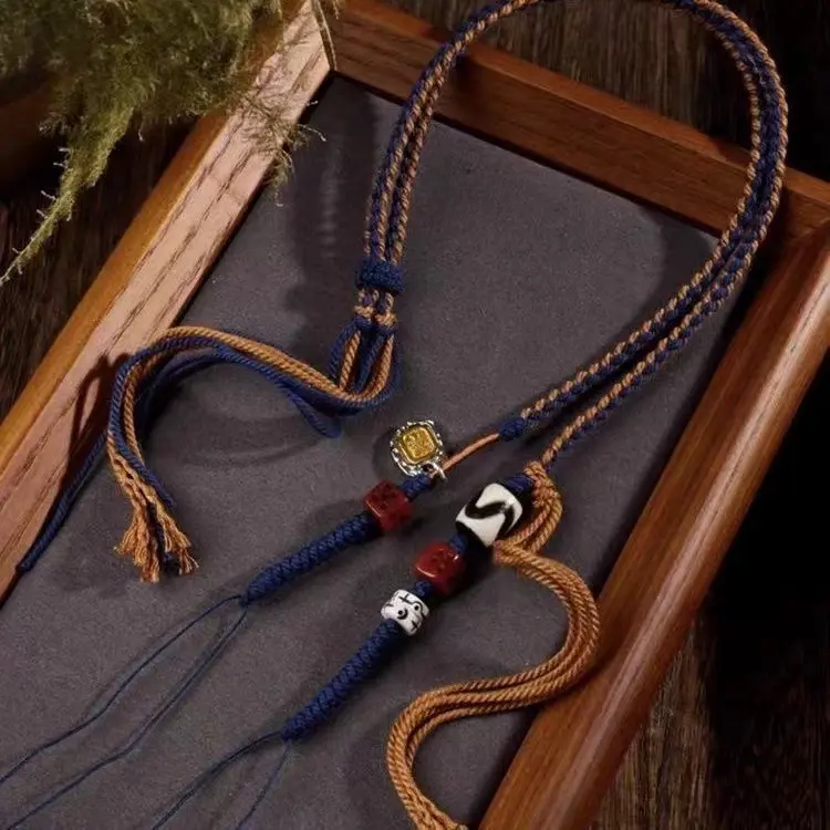 藏式手搓棉項鏈繩可橫穿天珠掛件繩民族風手工編織毛衣鏈繩