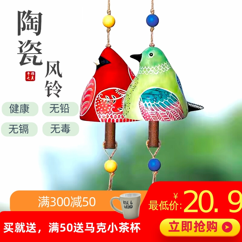 陶瓷風鈴吉祥掛飾中式風鈴創意家居陽臺畢業禮物汽車掛件生日禮物