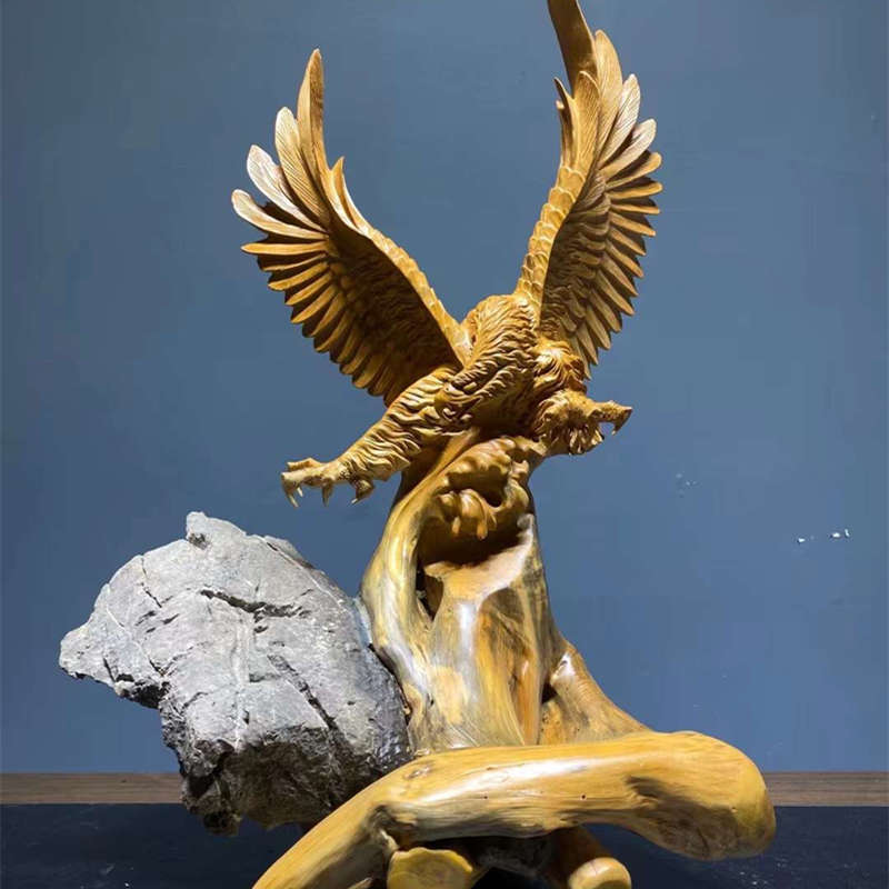 根雕木雕擺件太行崖柏老鷹大展宏圖動物花鳥送禮家居辦公室工藝品