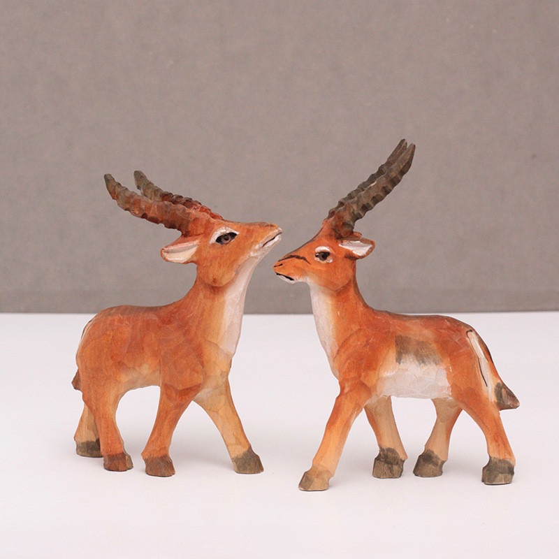 義樹家30026A-30026B角羊彩繪木雕動物系列手工雕刻自然質樸
