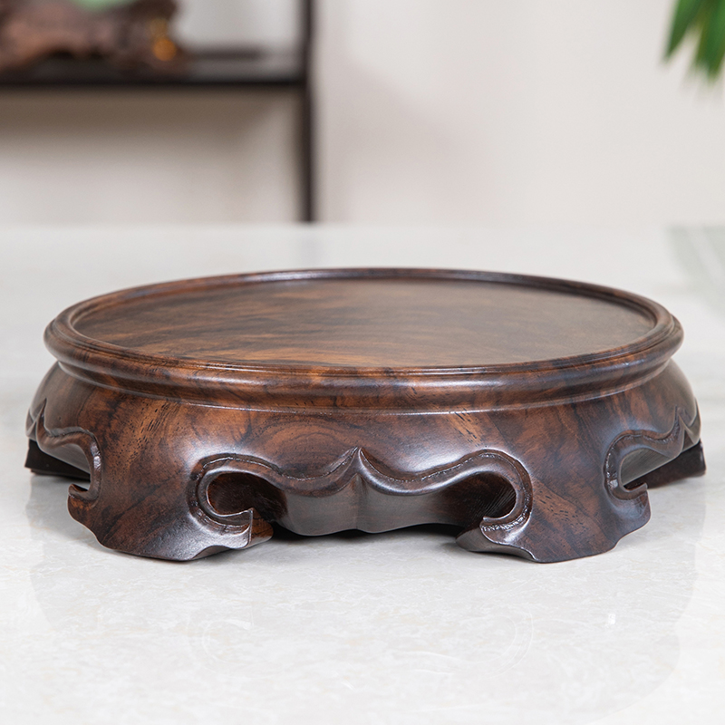 黑檀木實木花瓶盆景玉石花瓶文玩佛像工藝品金蟾工藝品擺件質底座