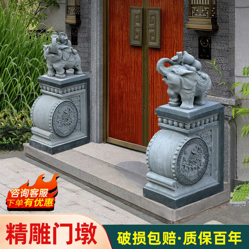 石雕大象門墩抱鼓石一對天然青石別墅花園酒店門口家用門當擺件