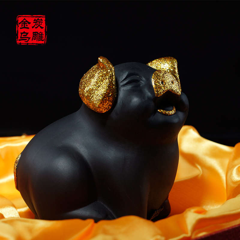 金烏炭雕金豬小車內裝飾品擺件活性炭汽車小轎車新車客廳創意擺設