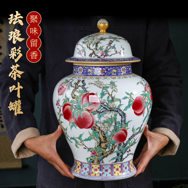 景德鎮陶瓷仿古琺瑯彩將軍罐客廳博古架裝飾品擺件大號儲物茶葉罐
